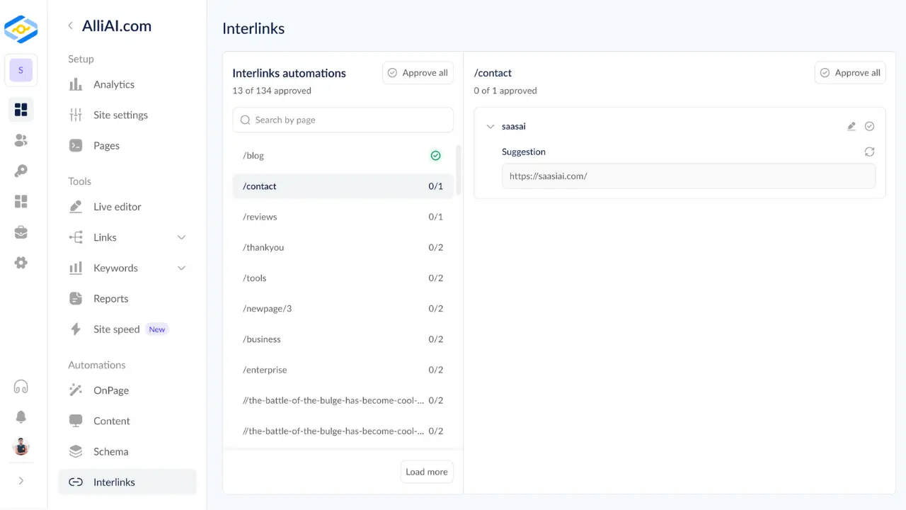 Overlinking is indeed a concern. Alli AI prioritizes quality over quantity. Its suggestions are strategically chosen to enhance navigation and content relevance. You retain complete editorial control, allowing you to refine the recommendations as needed.